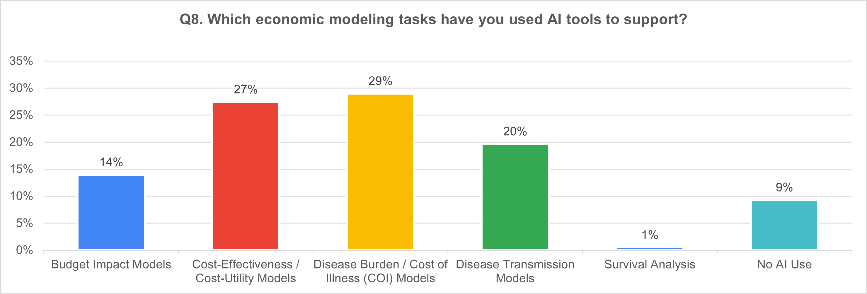 6) Economic modeling tasks supported by AI (multi-select; n = 121)